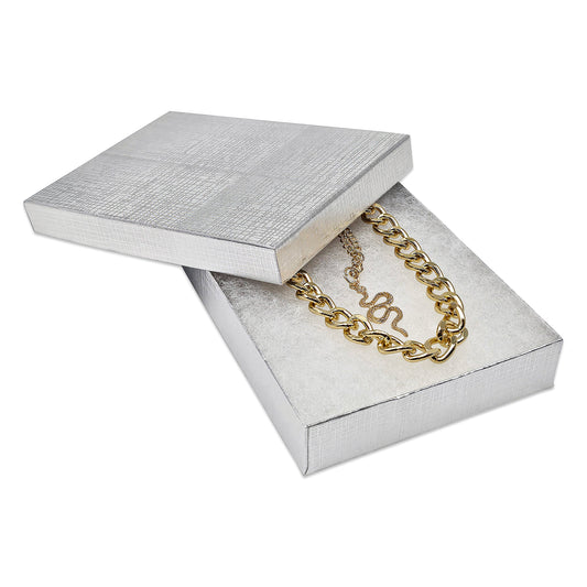 5" x 4" x 1" Silver Linen Pattern Cotton Filled Paper Box