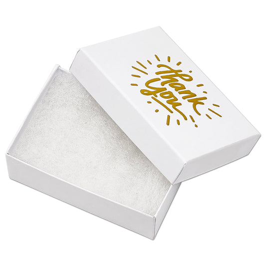 3 1/4" x 2 1/4" Matte White and Gold "Thank You" Cotton Filled Box