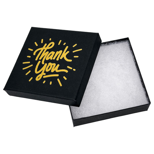 3 1/2" x 3 1/2" Black and Gold "Thank You" Cotton Filled Box