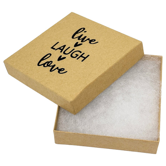 3 1/2" x 3 1/2" Kraft and Black "Live Laugh Love" Cotton Filled Box