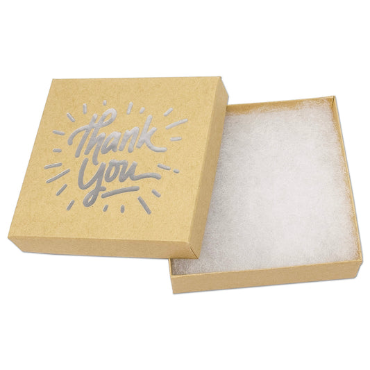 3 1/2" x 3 1/2" Kraft and Silver "Thank You" Cotton Filled Box