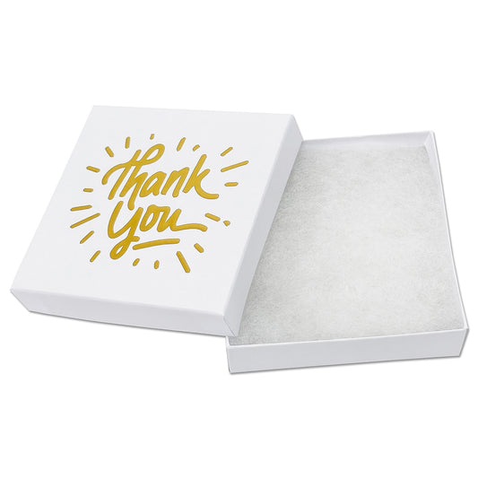 3 1/2" x 3 1/2" Matte White and Gold "Thank You" Cotton Filled Box