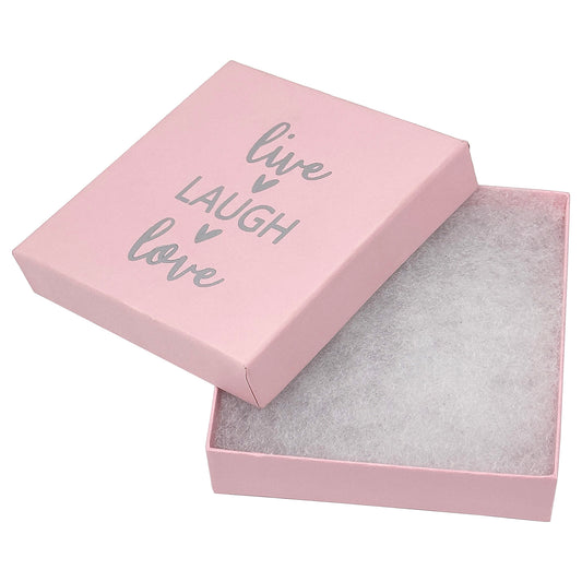 3 1/2" x 3 1/2" Pink and Silver "Live Laugh Love" Cotton Filled Box