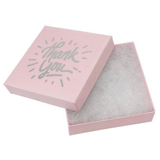 3 1/2" x 3 1/2" Pink and Silver "Thank You" Cotton Filled Box