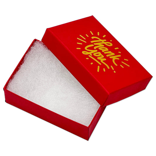 3 1/4" x 2 1/4" Matte Red and Gold "Thank You" Cotton Filled Box