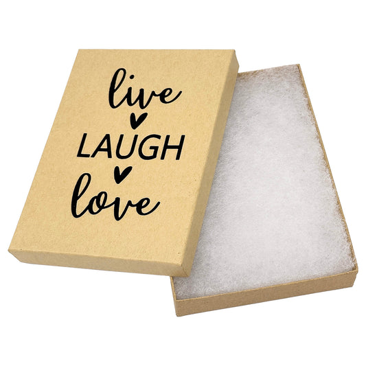 5 7/16" x 3 15/16" Kraft and Black "Live Laugh Love" Cotton Filled Box