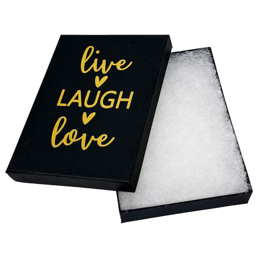 5 7/16" x 3 15/16" Black and Gold "Live Laugh Love" Cotton Filled Box