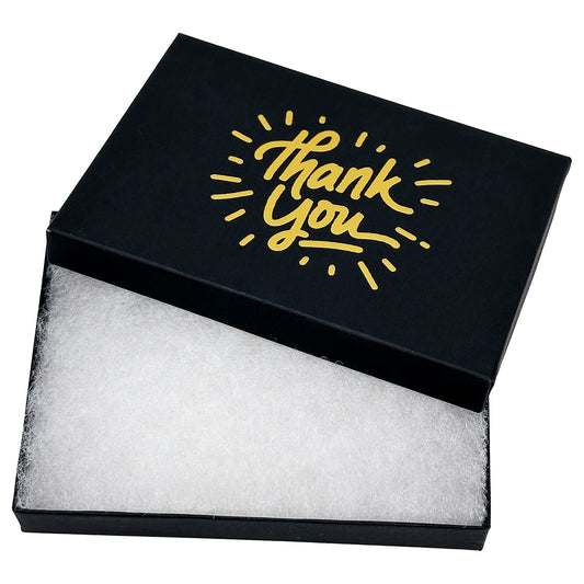 5 7/16" x 3 15/16" Black and Gold "Thank You" Cotton Filled Box