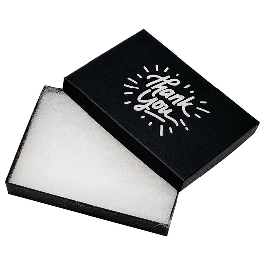 5 7/16" x 3 15/16" Black and Silver "Thank You" Cotton Filled Box