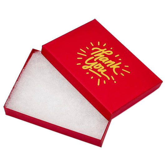 5 7/16" x 3 15/16" Matte Red and Gold "Thank You" Cotton Filled Box