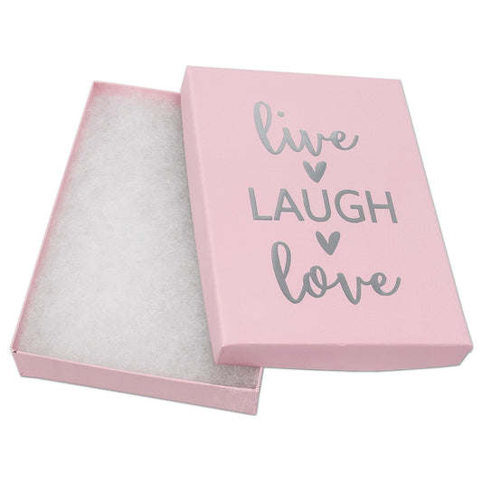 5 7/16" x 3 15/16" Pink and Silver "Live Laugh Love" Cotton Filled Box