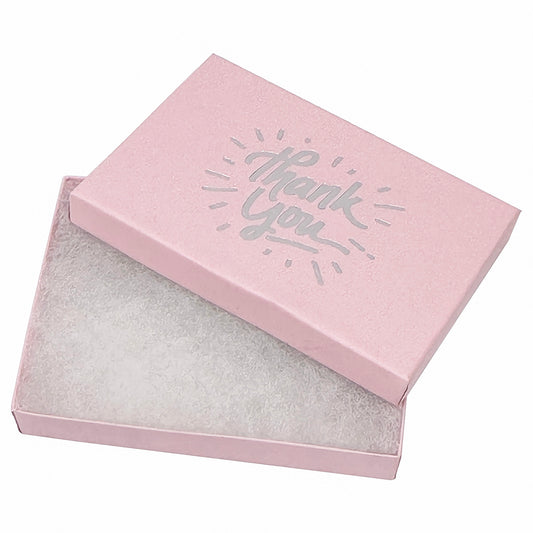 5 7/16" x 3 15/16" Pink and Silver "Thank You" Cotton Filled Box