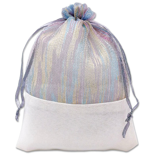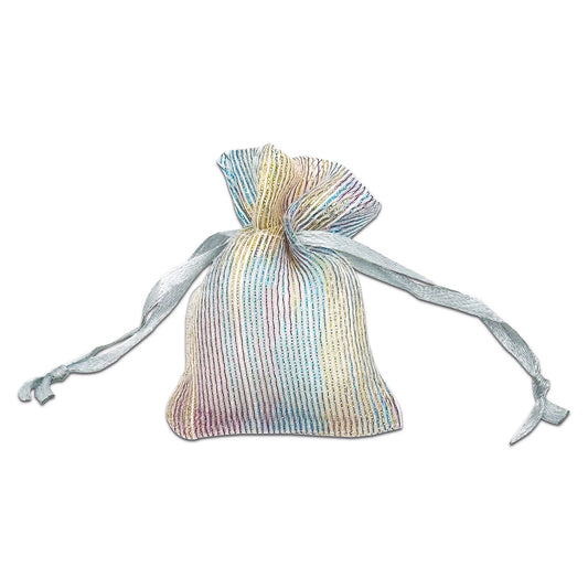 96-Pack Iridescent Striped Weave Organza Drawstring Pouch Gift Bags