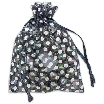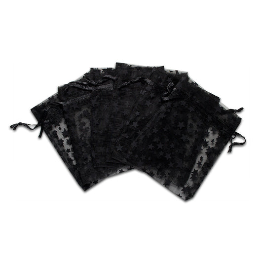 Black with Black Star Organza Drawstring Pouch Gift Bags