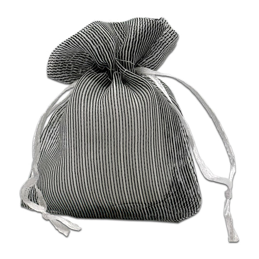 96-Pack Black Striped Weave Organza Drawstring Pouch Gift Bags