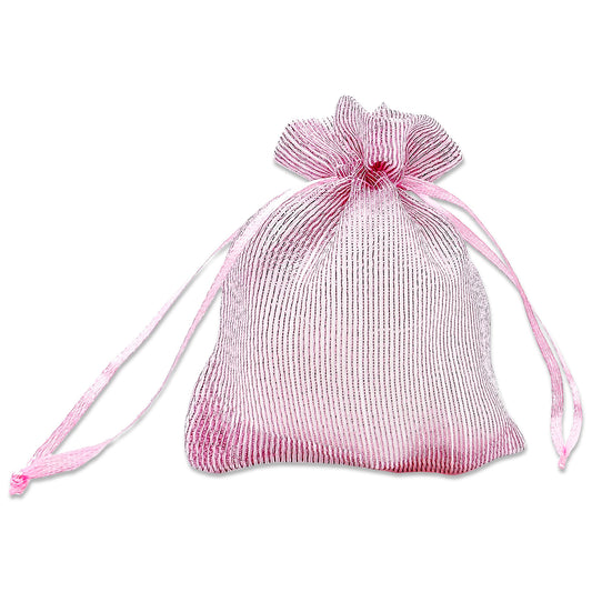 96-Pack Pink Striped Weave Organza Drawstring Pouch Gift Bags