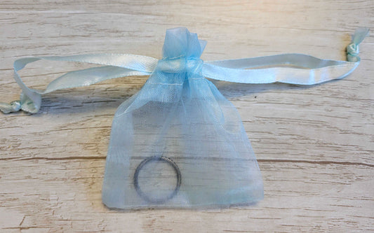 Light Blue Organza and White Linen Drawstring Pouch Gift Bags