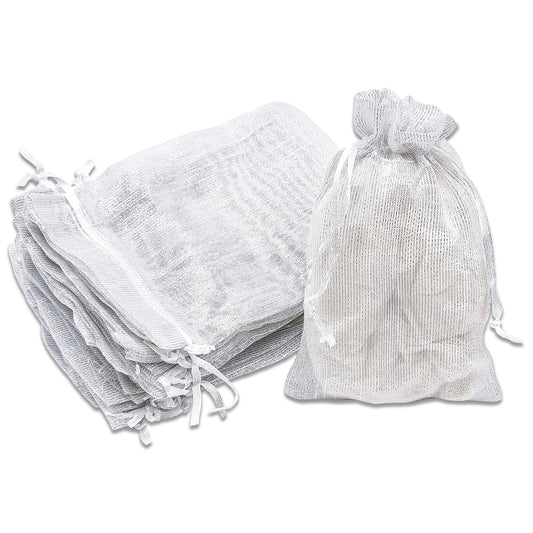 96-Pack Silver Striped Weave Organza Drawstring Pouch Gift Bags