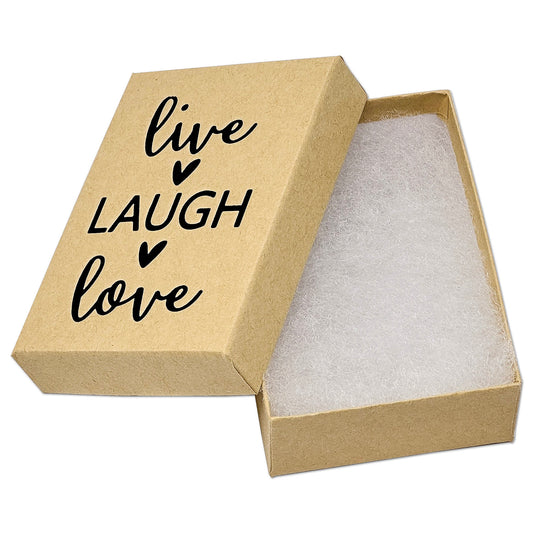 3 1/4" x 2 1/4" Kraft and Black "Live Laugh Love" Cotton Filled Box