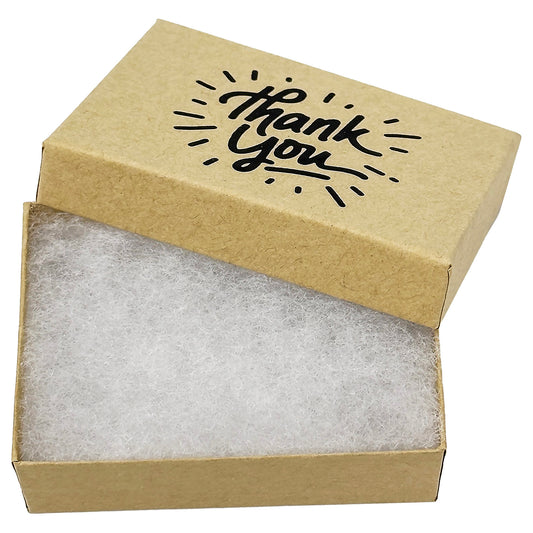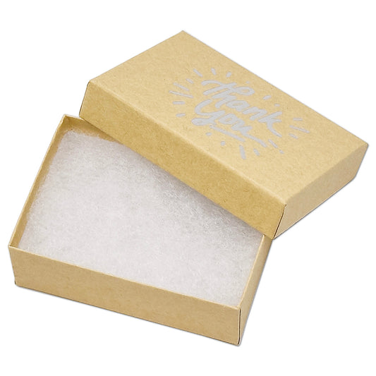 3 1/4" x 2 1/4" Kraft and Silver "Thank You" Cotton Filled Box