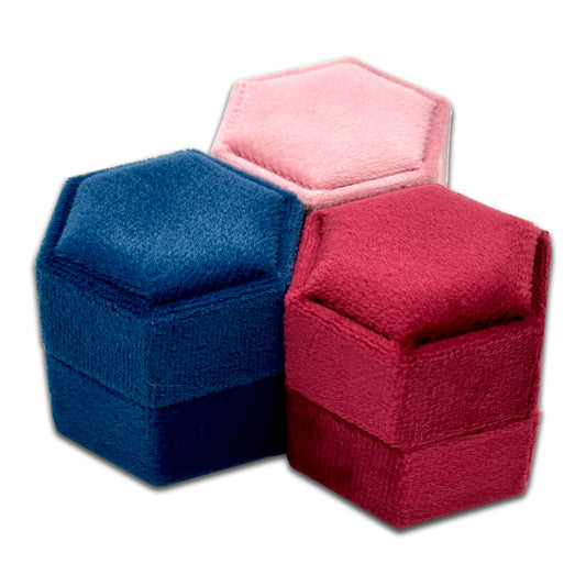 2" x 1.75" Pink Velvet Hexagon Double Ring Box