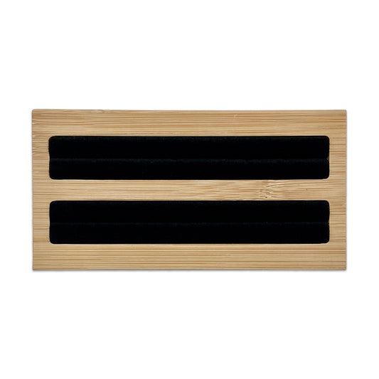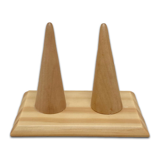 5 3/4" x 3" Wood Black Velvet 2 Row Ring Display Stand