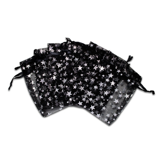 Black with Silver Star Organza Drawstring Pouch Gift Bags