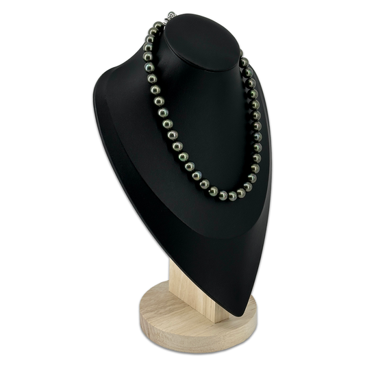 9 1/2" Black Leatherette Wood Base Necklace Bust Display