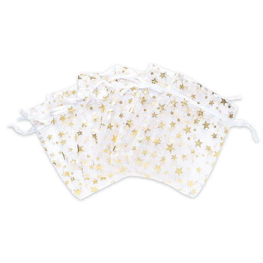White with Gold Star Organza Drawstring Pouch Gift Bags
