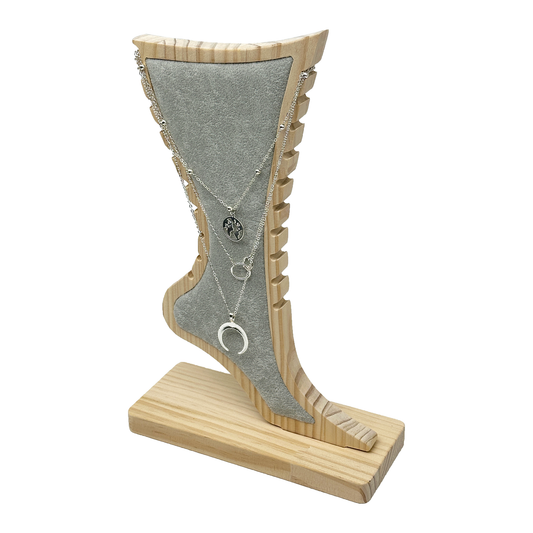 12" Natural Wood Gray Velvet Ankle Bracelet Jewelry Display