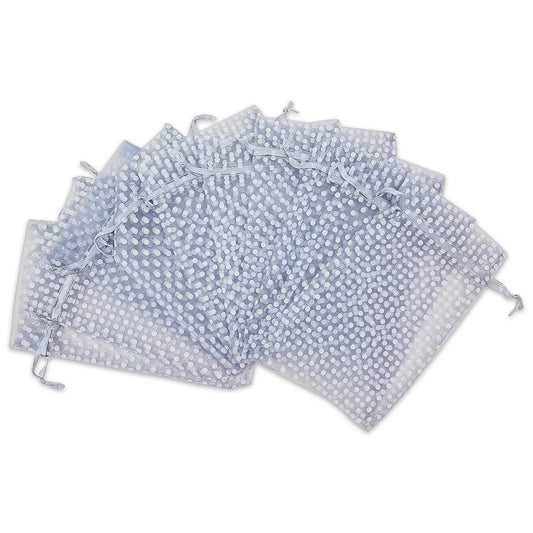 Silver with White Polka Dot Organza Drawstring Pouch Gift Bags