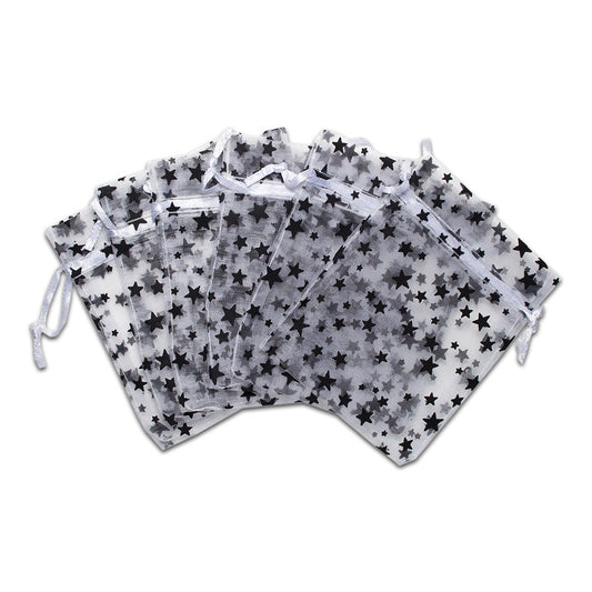 White with Black Star Organza Drawstring Pouch Gift Bags