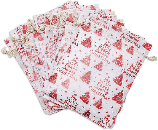 4" x 6" Cotton Muslin Red Christmas Tree Drawstring Gift Bags