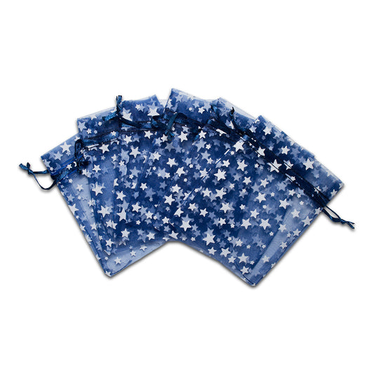 Navy with White Star Organza Drawstring Pouch Gift Bags