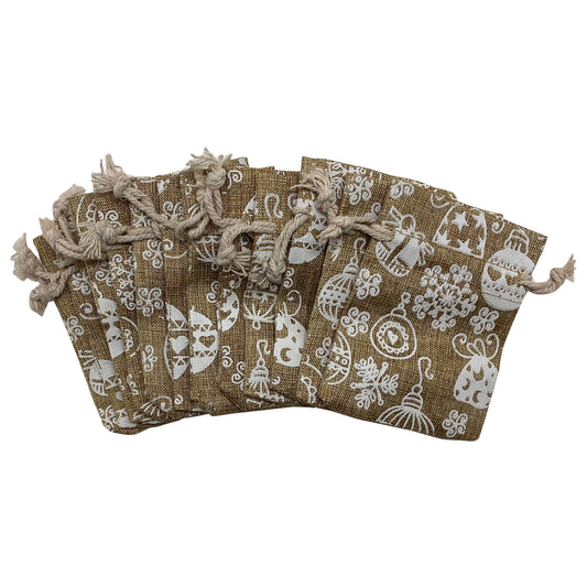 3" x 4" Jute Burlap White Christmas Ornament Drawstring Gift Bags