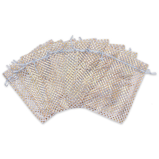 Silver with Gold Polka Dot Organza Drawstring Pouch Gift Bags