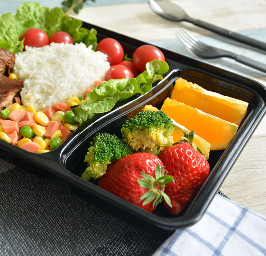 30 oz Double Compartment Plastic Disposable Food Containers (50 Pack)