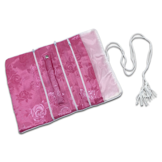 11 1/2" x 8 1/2" Pink Floral Pattern Jewelry Case Roll