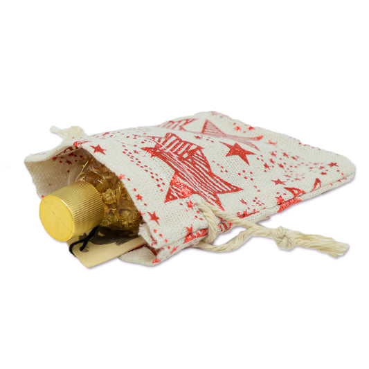 3" x 4" Cotton Muslin Red Star Drawstring Gift Bags