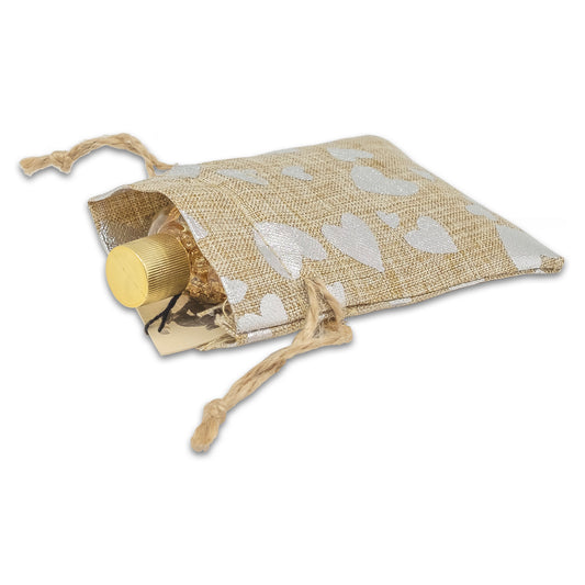 3" x 4" Jute Burlap Gold Heart Drawstring Gift Bags