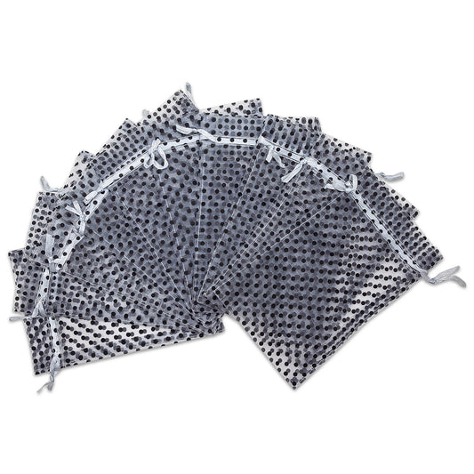 Silver with Black Polka Dot Organza Drawstring Pouch Gift Bags