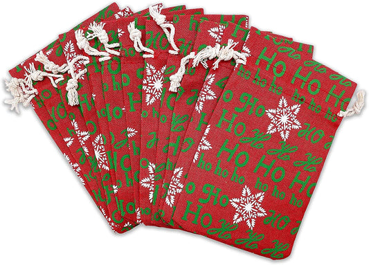 4" x 6" Jute Burlap Red Christmas Ho Ho Ho Drawstring Gift Bags