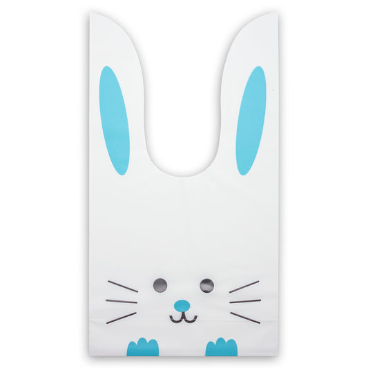Blue Bunny Emoji Flap-Tie White Plastic Gift Bags