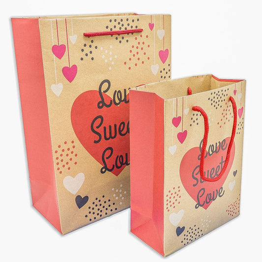 Love Sweet Love Kraft Paper Shopping Gift Bags (12-Pack)