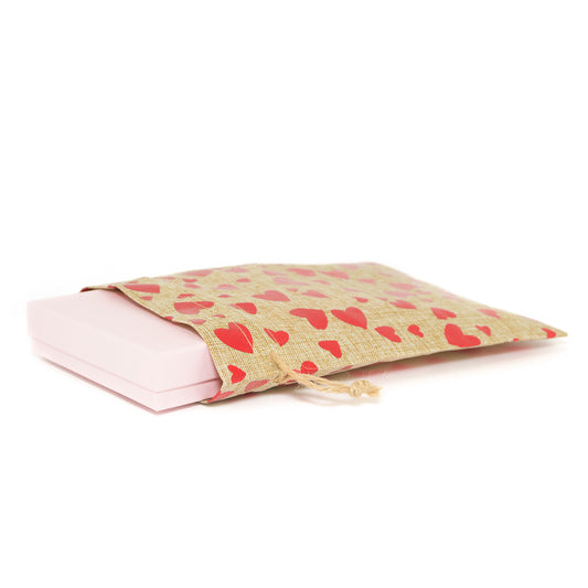 8" x 10" Jute Burlap Red Heart Drawstring Gift Bags