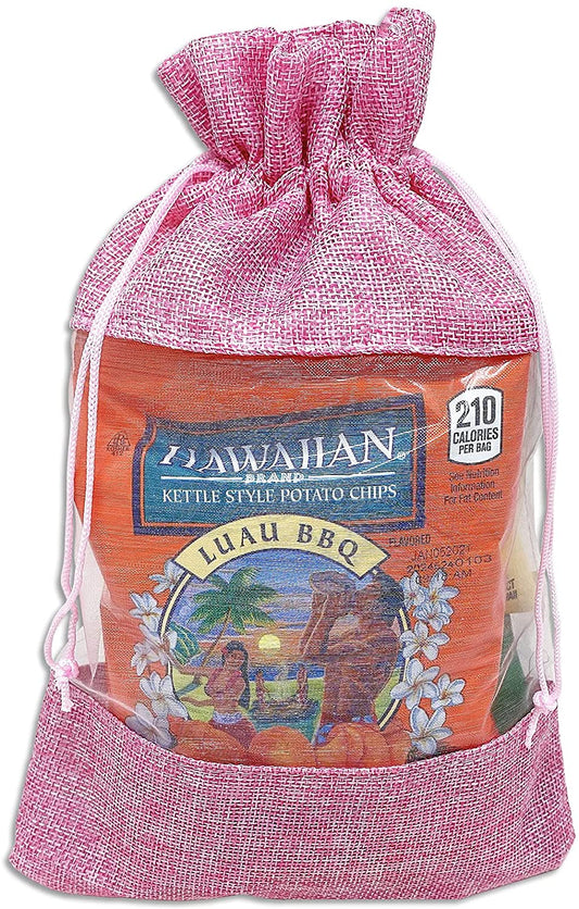 3 1/2" x 5 1/2" Linen Burlap and Sheer Organza Pink Gift Bag
