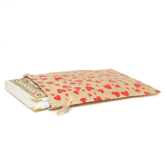 6" x 8" Jute Burlap Red Heart Drawstring Gift Bags