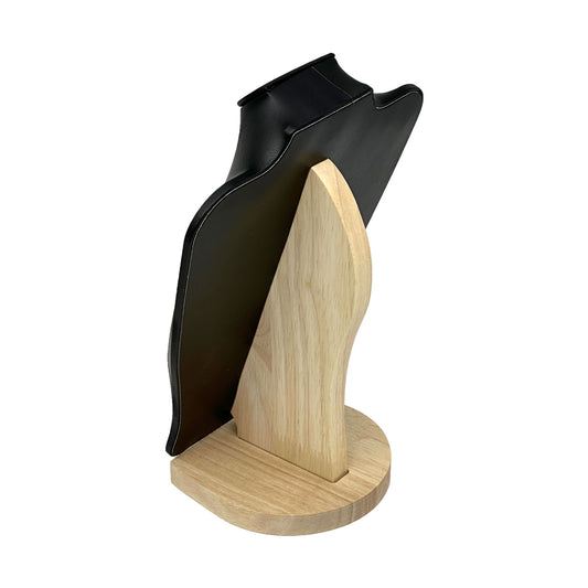 11 1/2" Black Leatherette Light Oak Base Necklace Bust Display