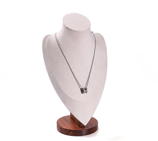 12" Cream Microfiber Walnut Base Necklace Bust Display