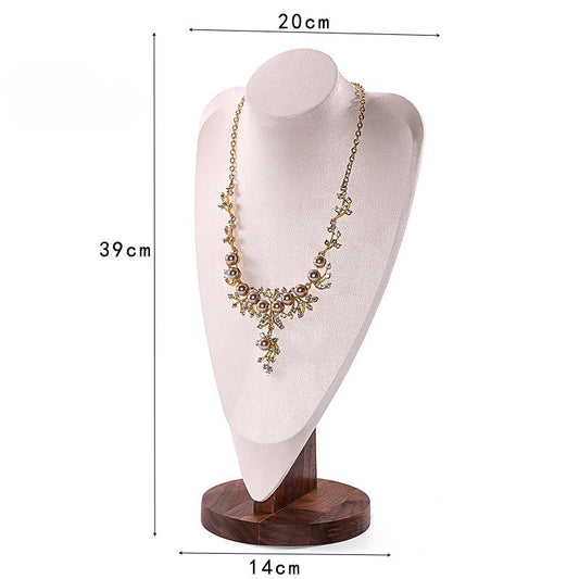 14 1/2" Cream Microfiber Walnut Base Necklace Bust Display